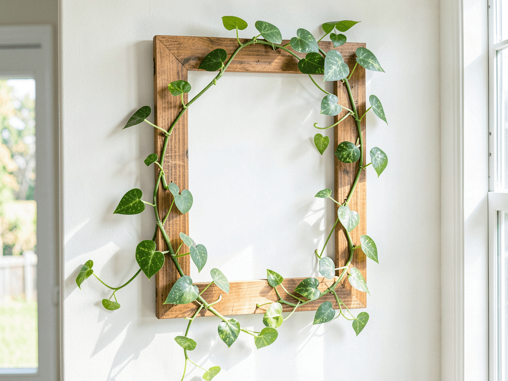 Want something totally unique? Creating living wall art with money plants combines crafting with gardening for a personalized statement piece. I made my first frame from an old window frame, chicken wire, and moss – total cost under $20, but it looks like expensive living art.