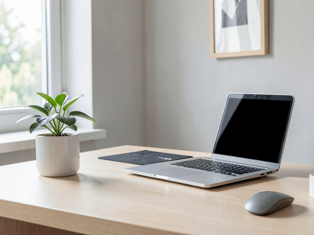 The container matters in minimalist setups. Choose something that complements your desk aesthetic without demanding attention. I love matte black or white ceramics – they disappear into the background while the plant takes center stage.