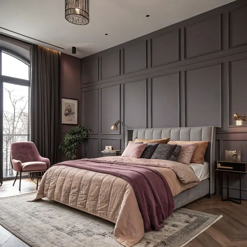2. Charcoal and Blush Contrast Walls