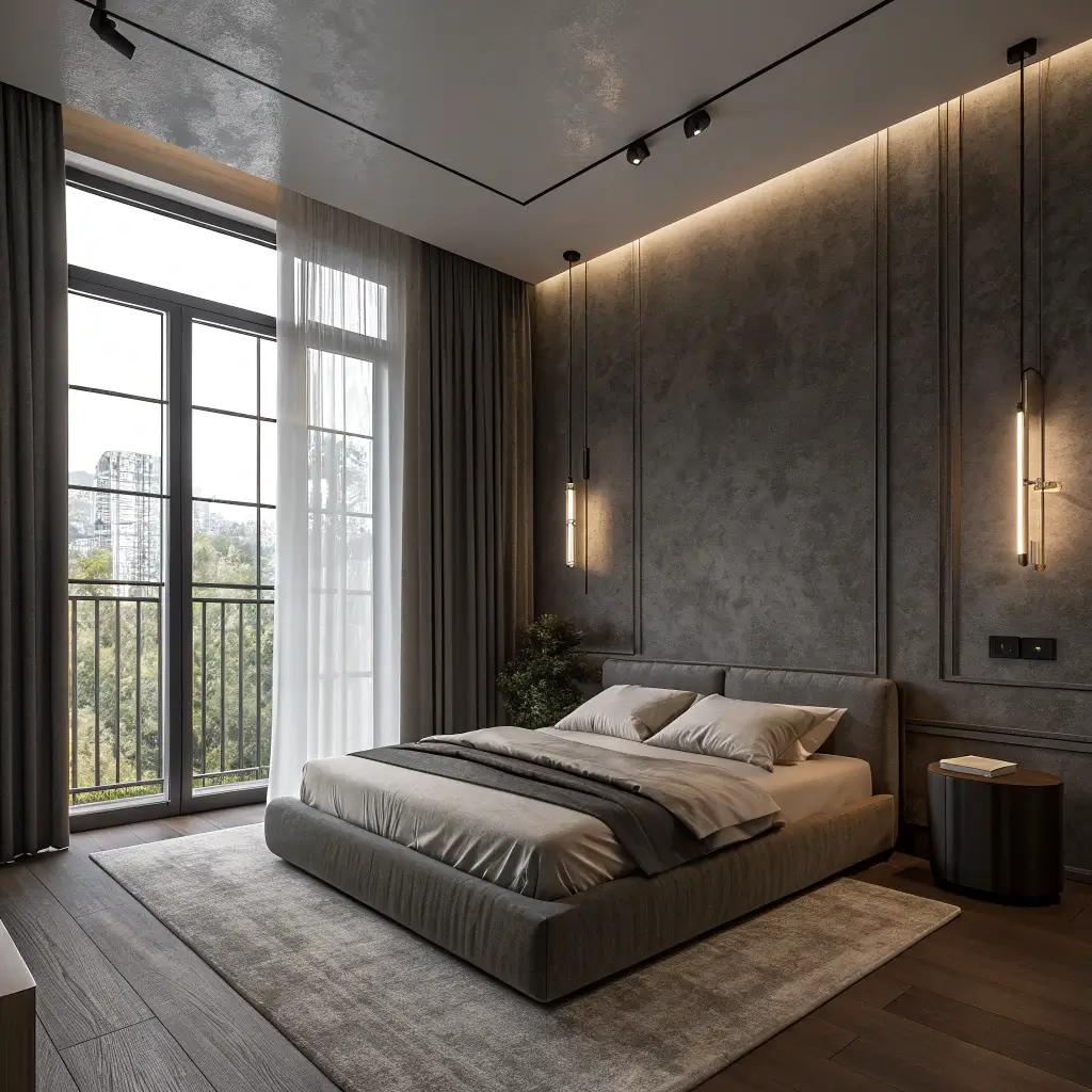 6. Smoky Gray Minimalist Bedroom
