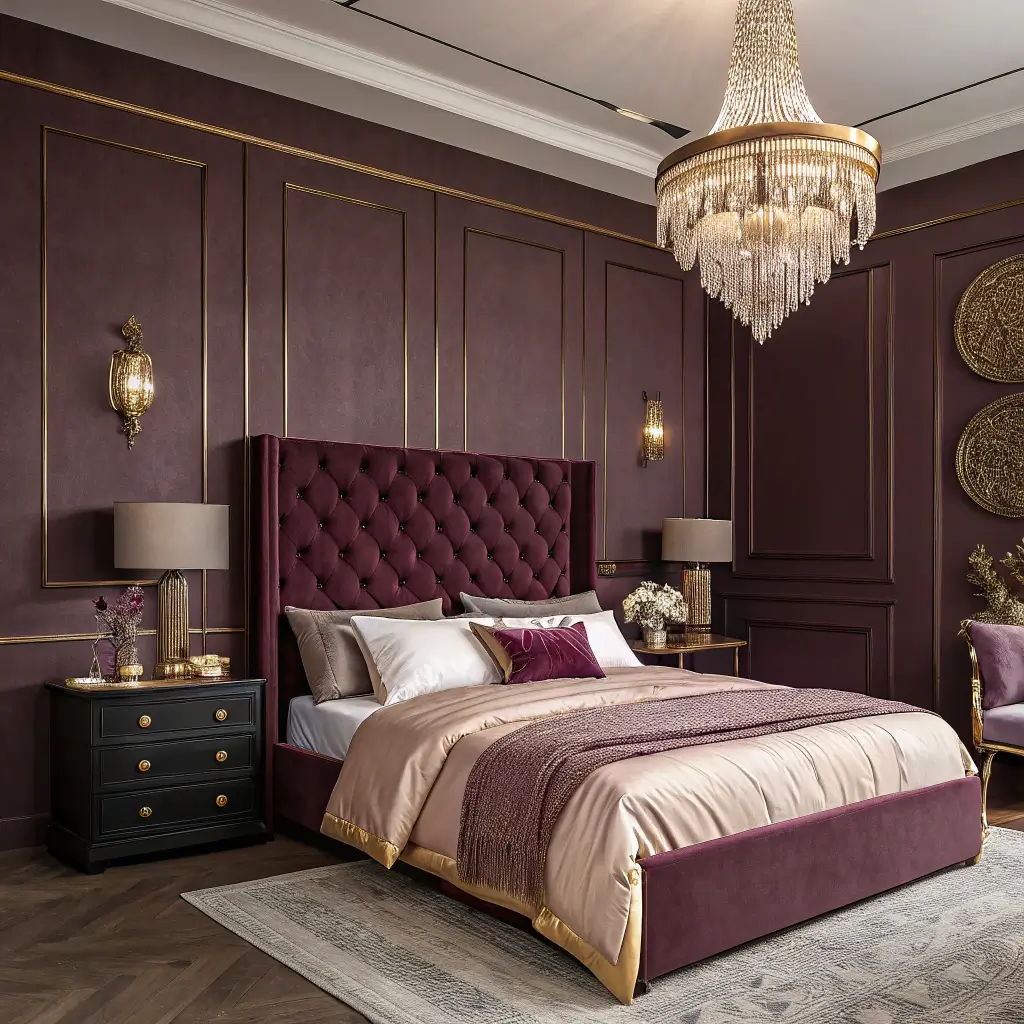 Rich plum screams luxury louder than any other moody color. It’s bold, unapologetic, and makes every bedroom look expensive.