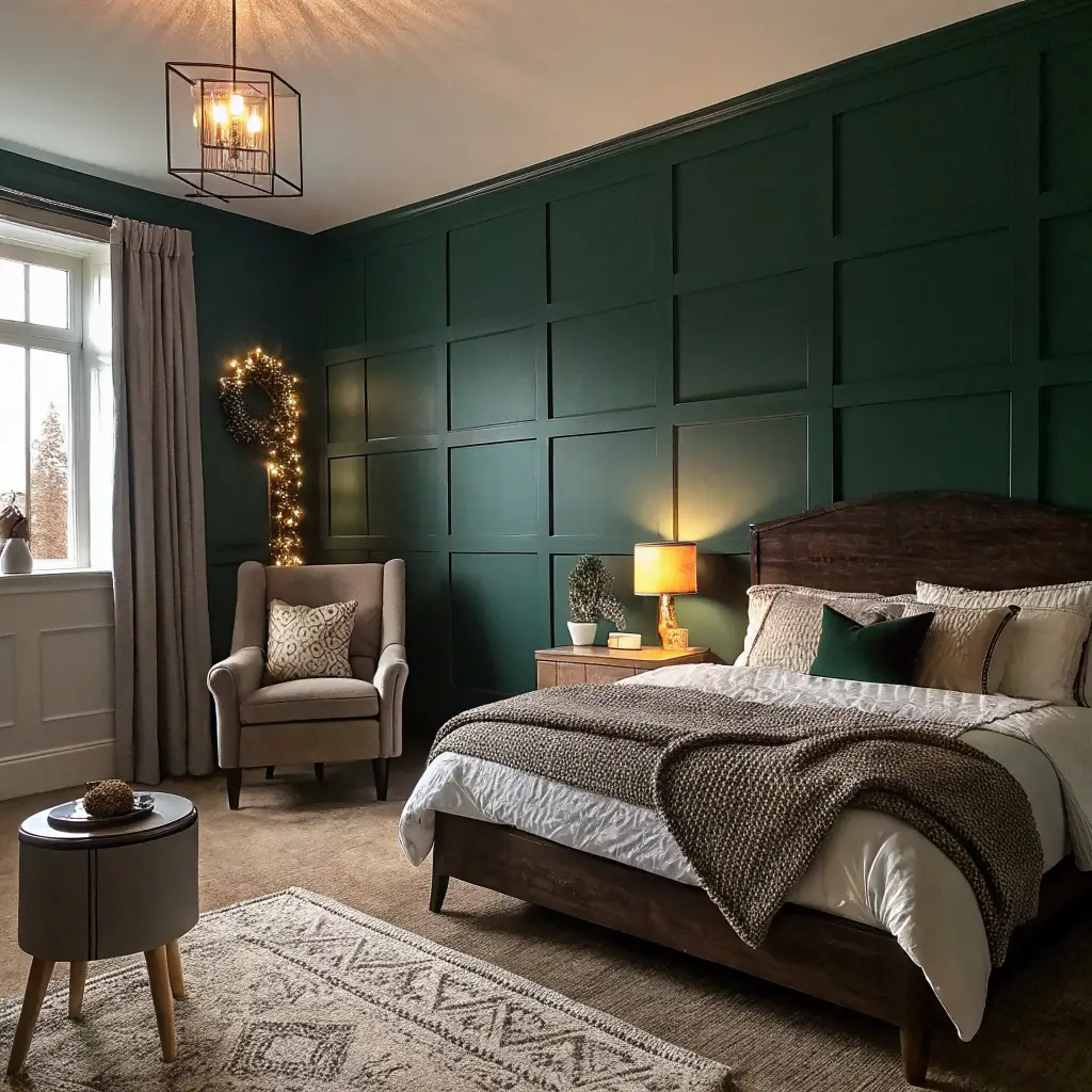1. Deep Emerald Serenity Bedroom