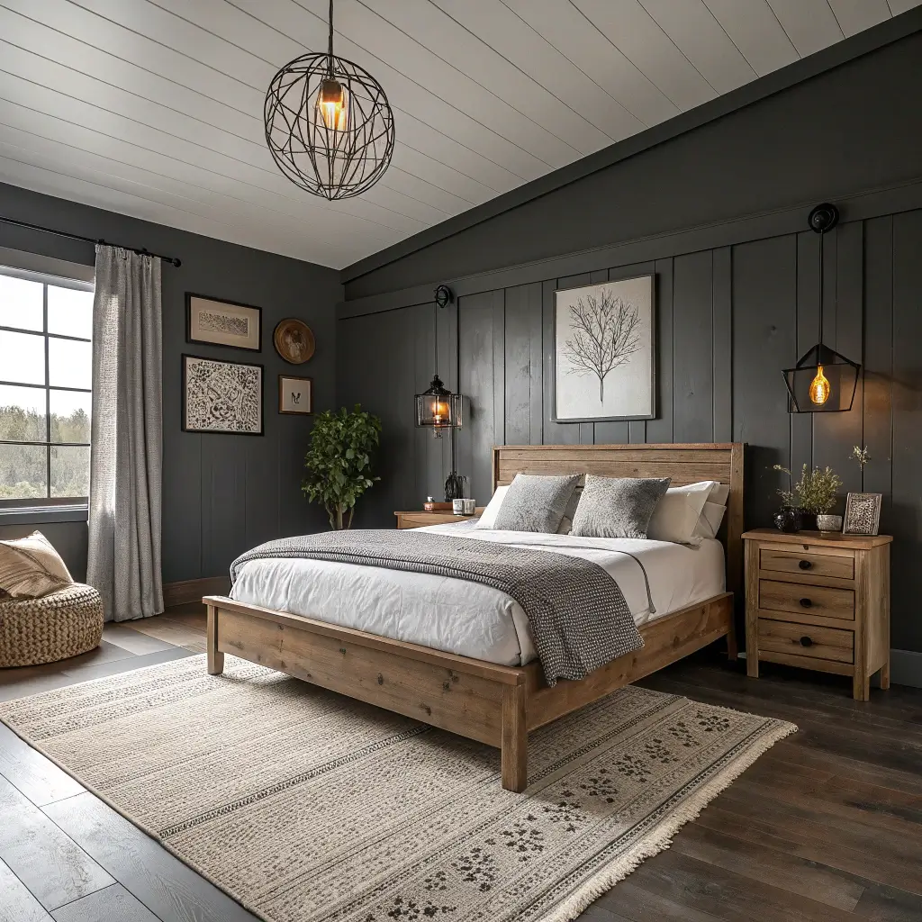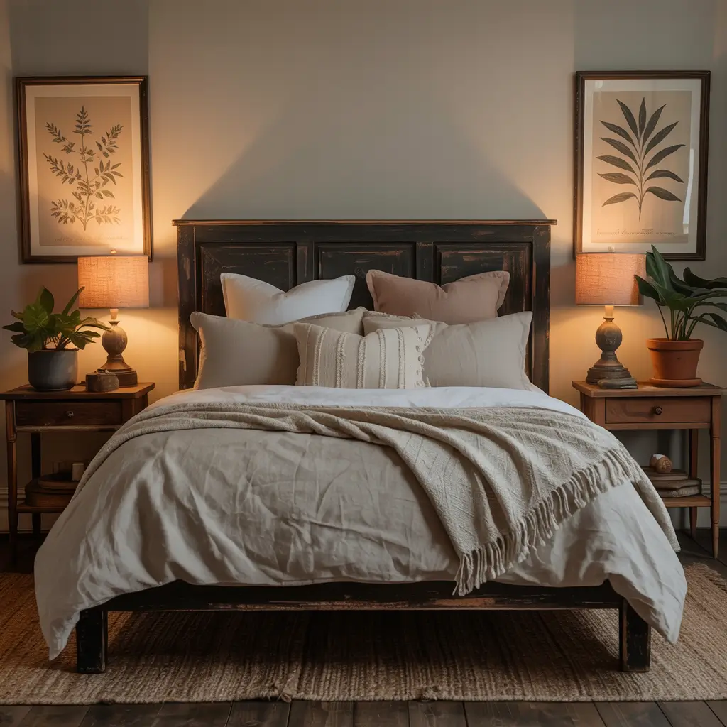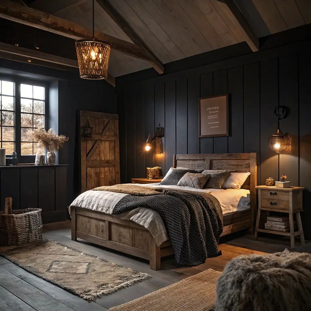 The ratio matters here. Aim for 60% farmhouse, 40% industrial. Too much metal and concrete makes your bedroom feel like a factory. Too little and you lose that moody edge.