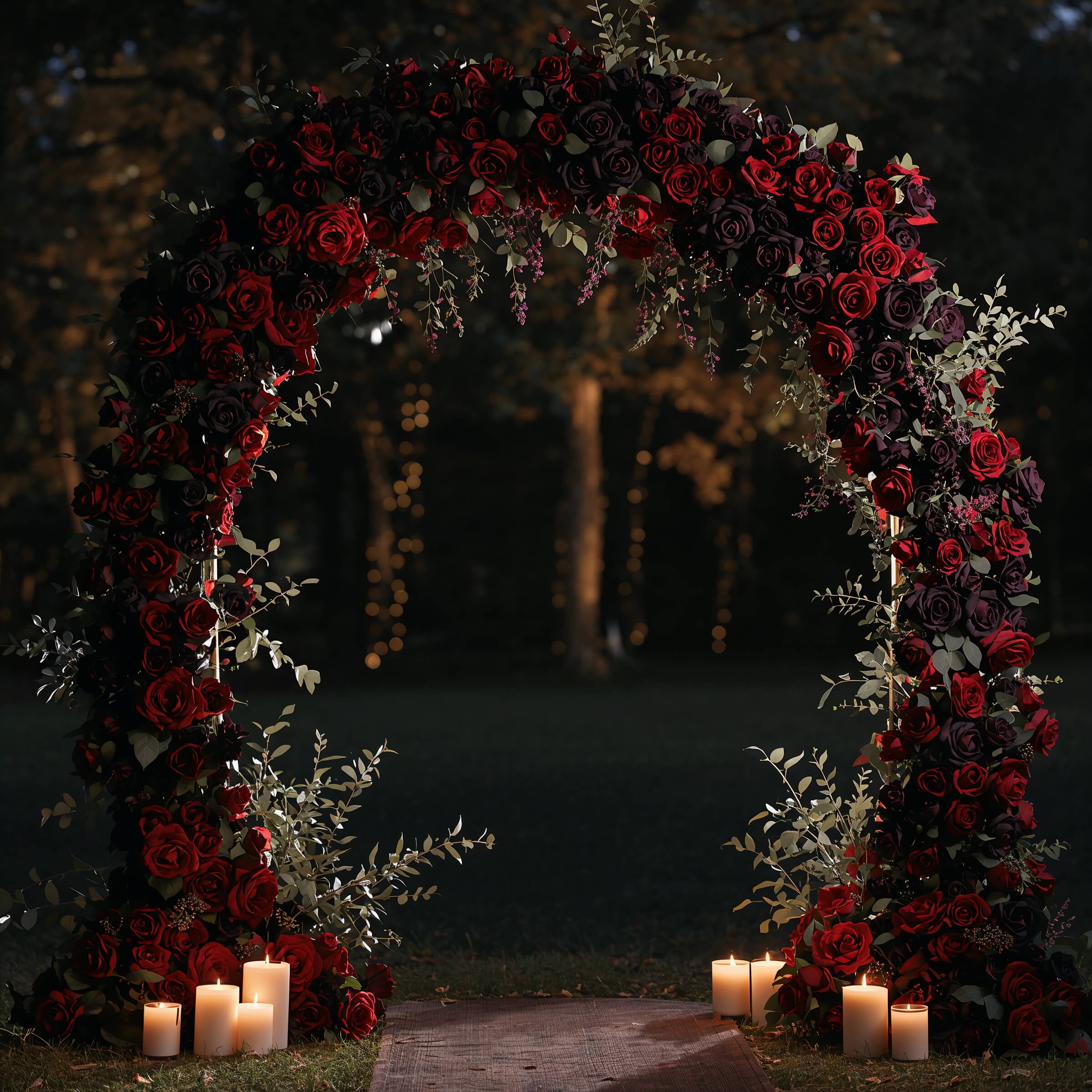 Remember when wedding arches were all baby’s breath and white roses? Yeah, those days are gone, and dark floral archways have entered the chat with all the drama of a Victorian romance novel.