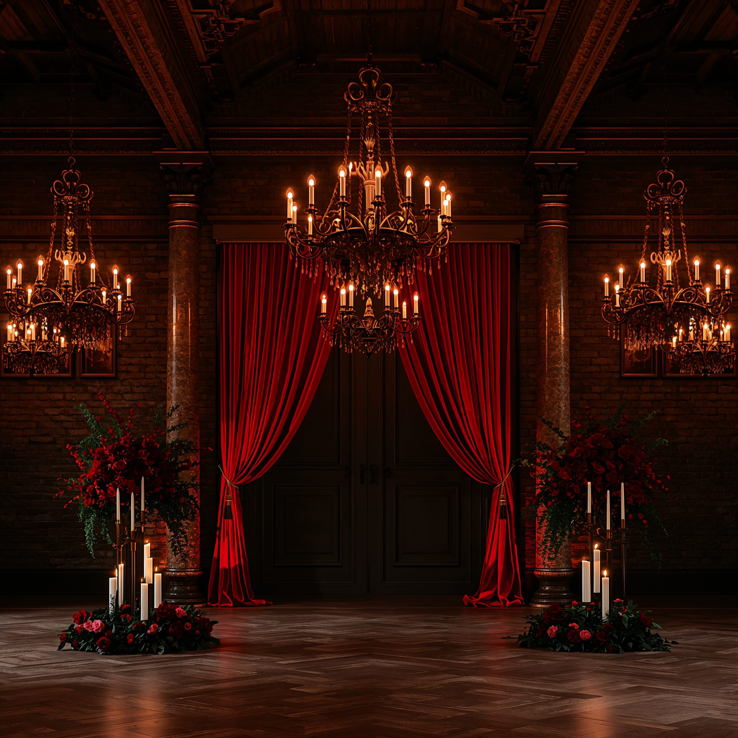 Nothing says moody romance quite like gothic-inspired chandeliers dripping with crystals and casting mysterious shadows across your venue. And before you say “but my venue doesn’t have chandeliers,” let me blow your mind: you can rent or DIY these bad boys.