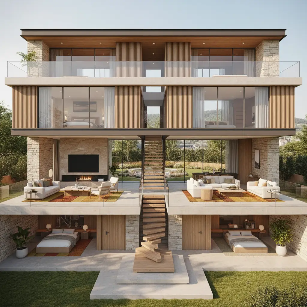 Some designs incorporate “skip-stop” arrangements where certain rooms are only accessible from specific levels, reducing unnecessary circulation space.