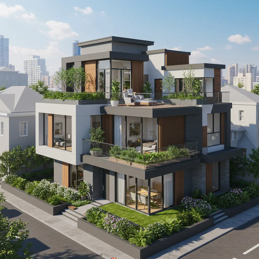 Small lot designs stack living spaces efficiently, often reaching three stories to accommodate multiple generations. Each floor might house a different generation, or floors might mix private and shared spaces strategically.