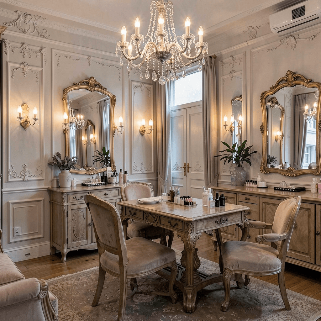 You lean on ornate details, soft lighting, and antiques—or antique-looking pieces. You make the salon feel like a boutique, not a service factory.