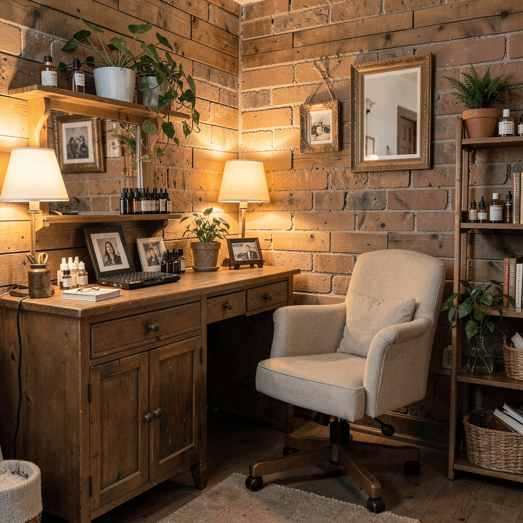 10) Cozy Rustic Nail Corner: Warm, Inviting, and Secretly High-End