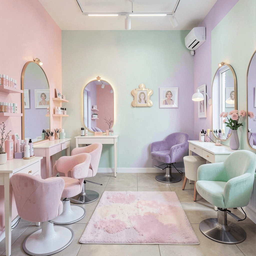 Pastel wonderland works when you want a salon that feels approachable but still premium. You can make it elegant with the right finishes and a little self-control.