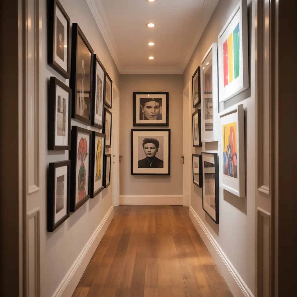 Who says narrow hallways can’t be your personal art museum? Gallery walls turn boring passages into conversation starters. I’ve transformed my hallway into what my friends call “the Instagram tunnel” – and honestly, they’re not wrong.