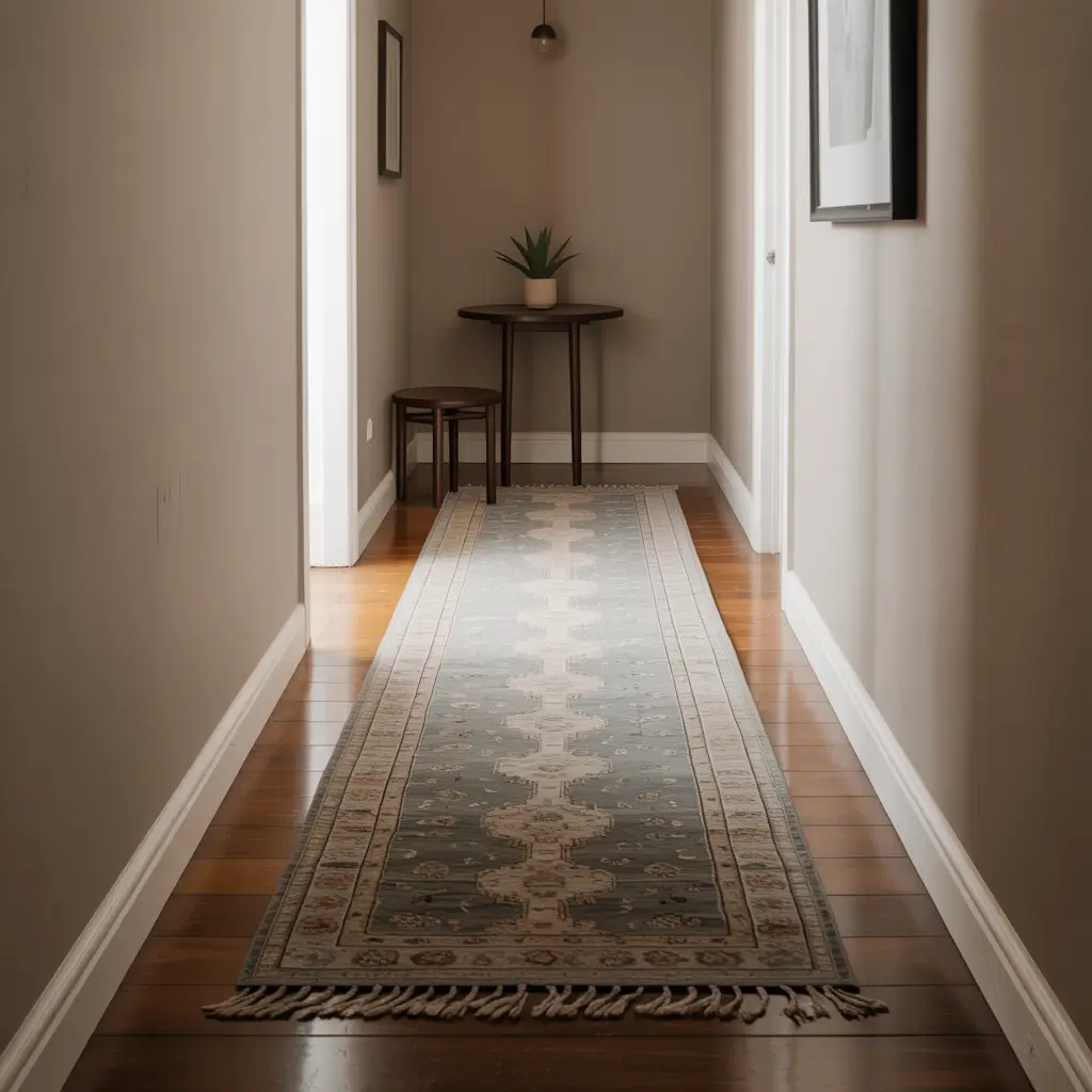 The pattern draws your eye down the length of the hallway, making it feel longer and more intentional. Plus, it adds softness and sound absorption, which is clutch if you have downstairs neighbors who complain about everything (looking at you, Mrs. Henderson).