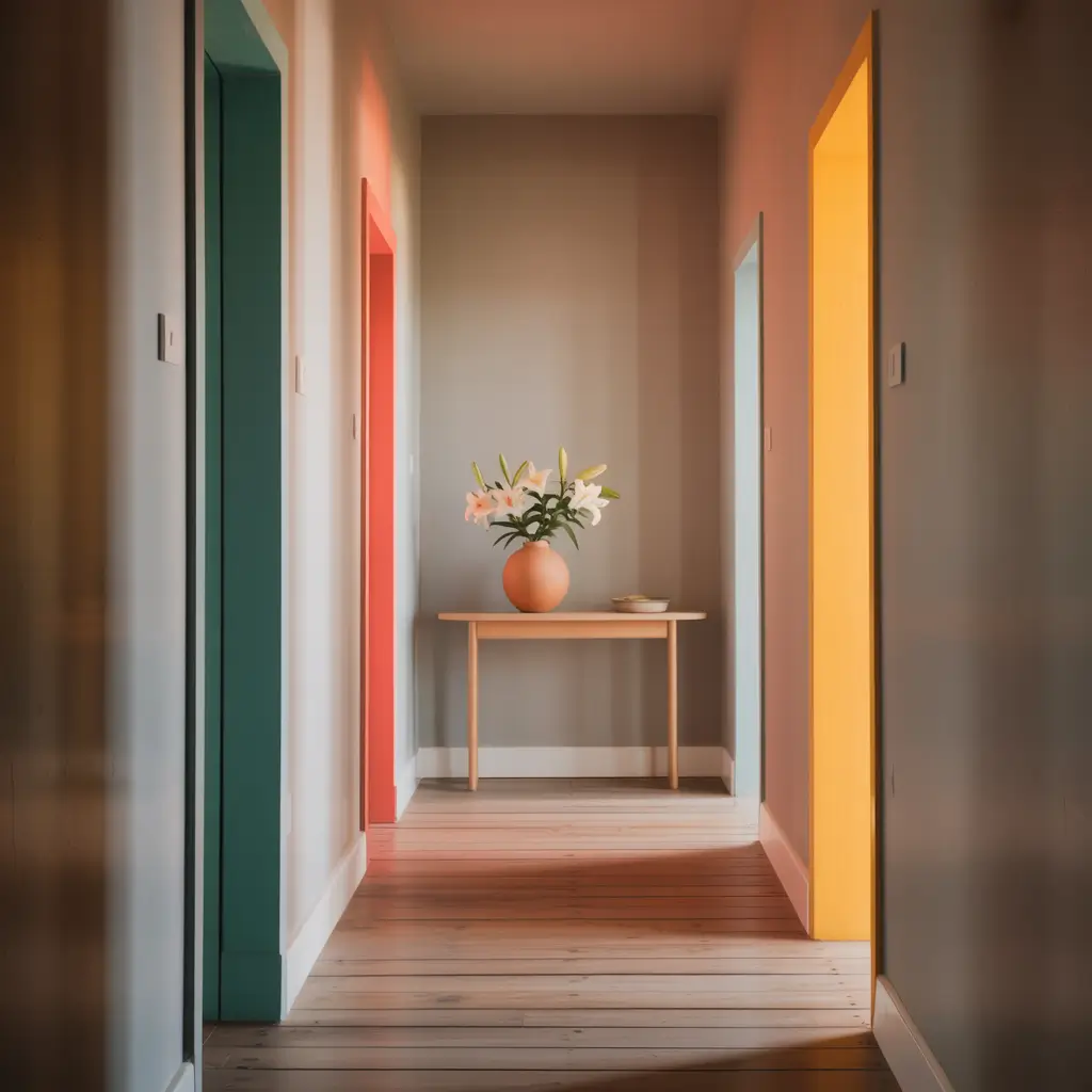 This trick works especially well if your hallway has multiple doors. The repeated color creates rhythm and draws your eye through the space. Plus, it’s way easier than painting entire doors if you’re commitment-phobic like me.