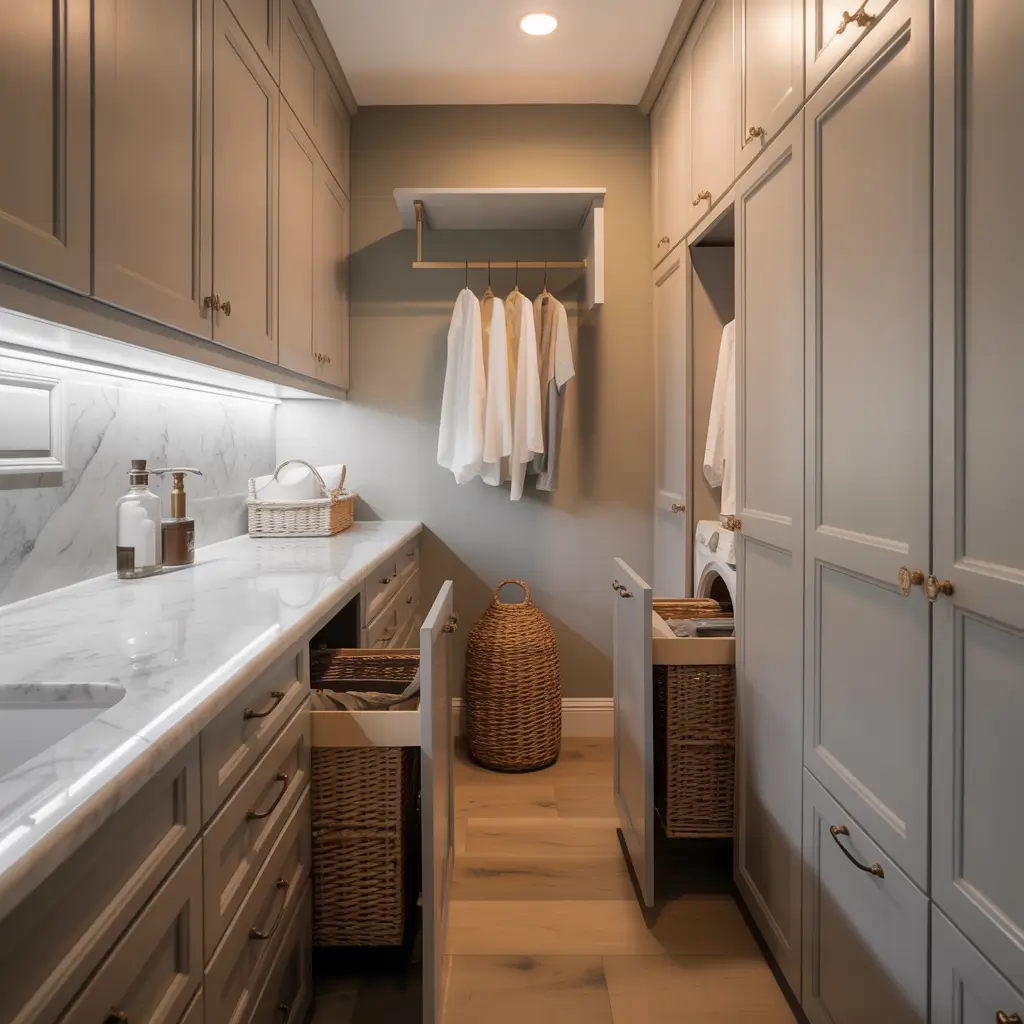 - Pull-out hampers at hip height