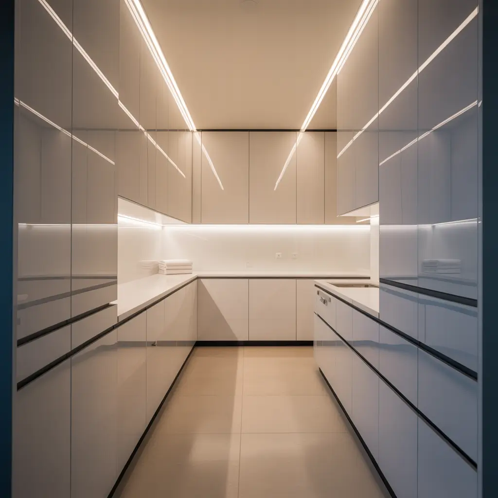 - LED strip lighting under cabinets