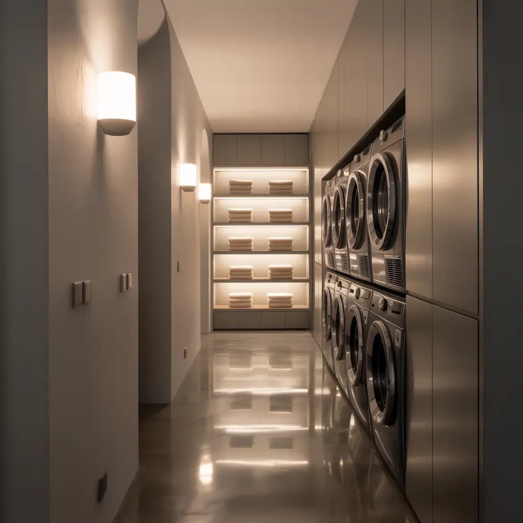 Got a dead-end hallway? Convert it to a laundry zone. Hallways are typically 36-42 inches wide – plenty of room for a functional laundry setup.