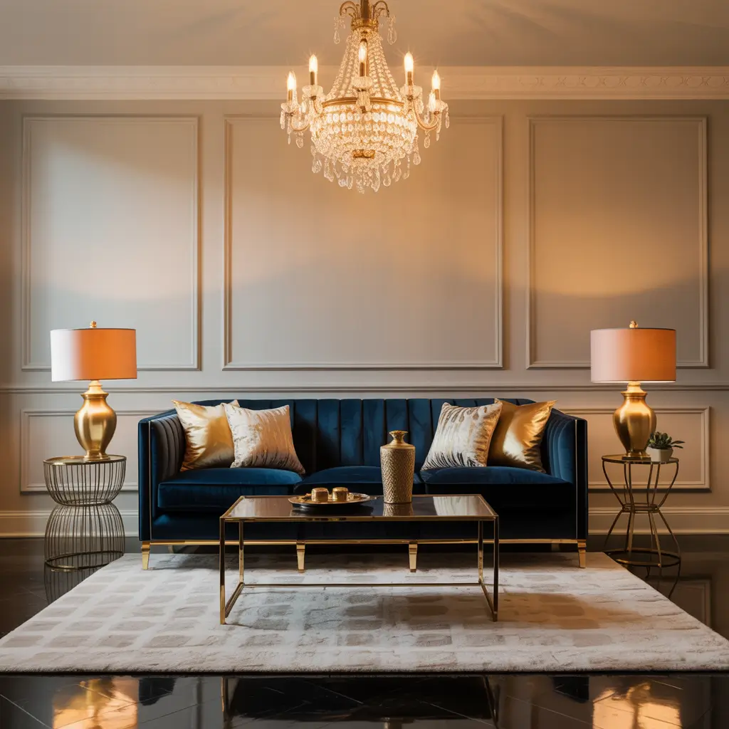 The key to pulling off navy and gold without looking like you’re trying too hard is restraint with the metallic elements. Choose quality over quantity – a few well-crafted gold pieces will create more impact than numerous cheaper items. Let your navy couch and those special gold accents be the stars, with supporting elements in neutral tones that don’t compete for attention.