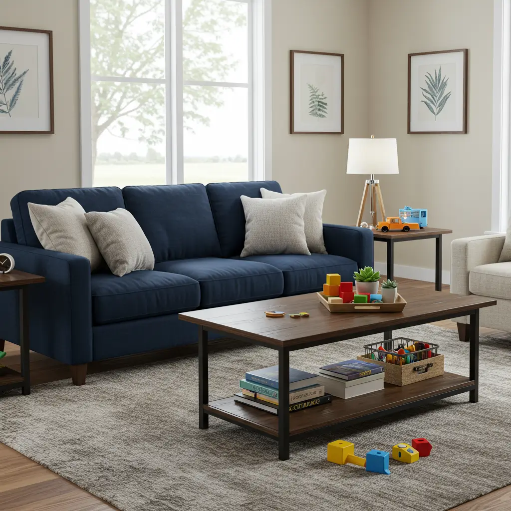Family-friendly elements that work with navy couches: