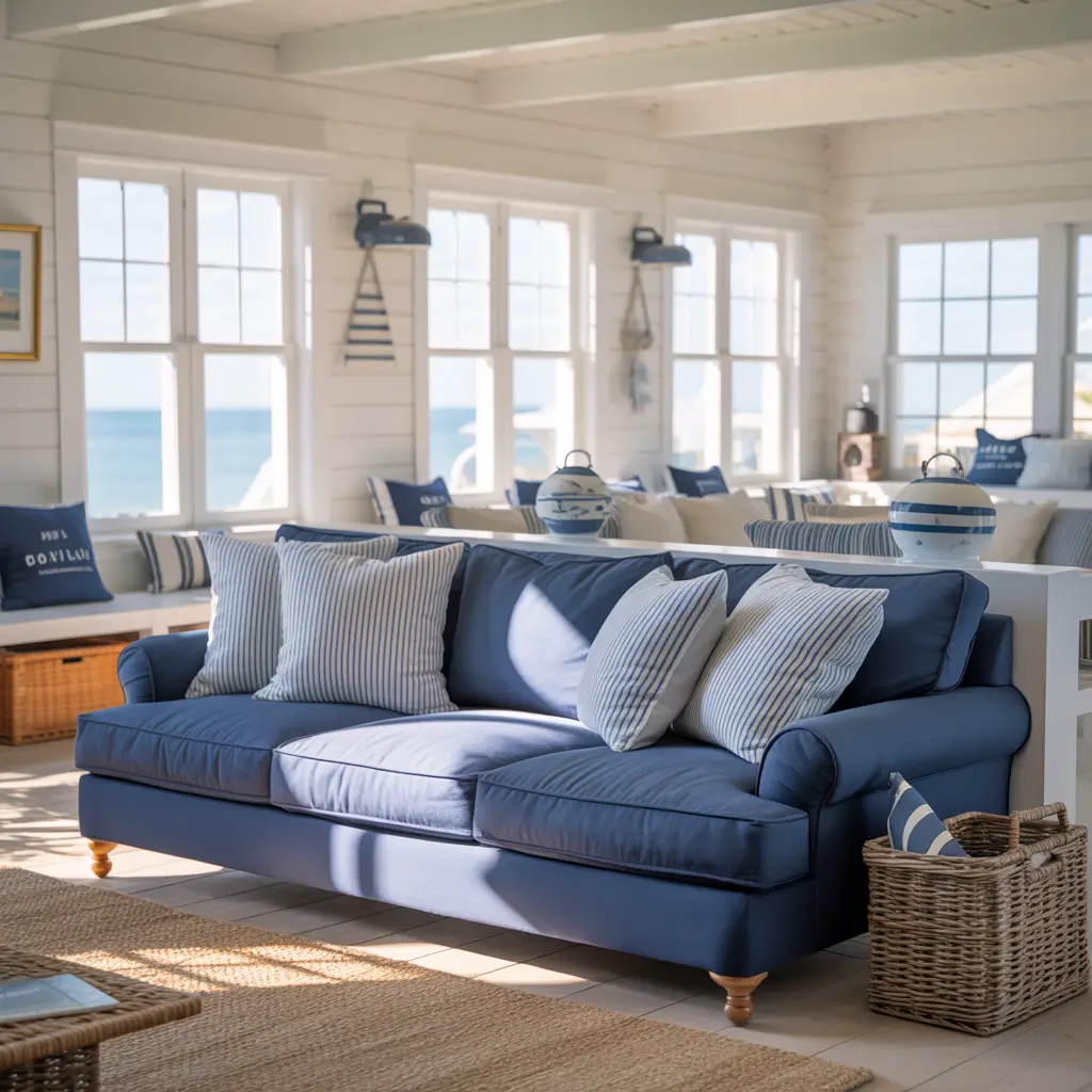 Coastal Vibes: Navy Sofa Decor