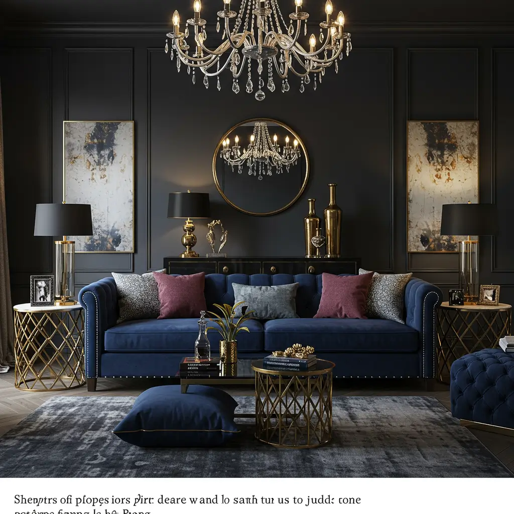 Ready for some serious glamour? Pairing navy with gold accents creates this incredibly luxe, sophisticated vibe that makes your living room feel like a high-end hotel lobby (in the best possible way). This is my favorite styling approach for dinner parties and holiday gatherings – it just elevates everything.