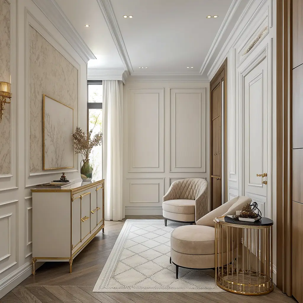 Wall molding might be the single most impactful neoclassical element you can add. It transforms flat walls into architectural features, and modern interpretations keep it from feeling like a museum.