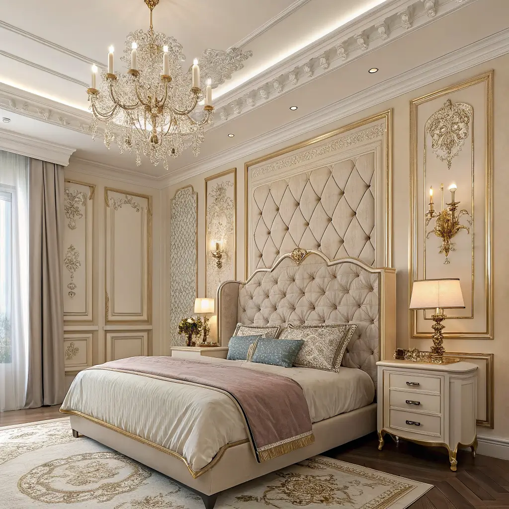 The contemporary neoclassical bedroom balances romance with restraint. You want elegance without feeling like you’re sleeping in a museum.