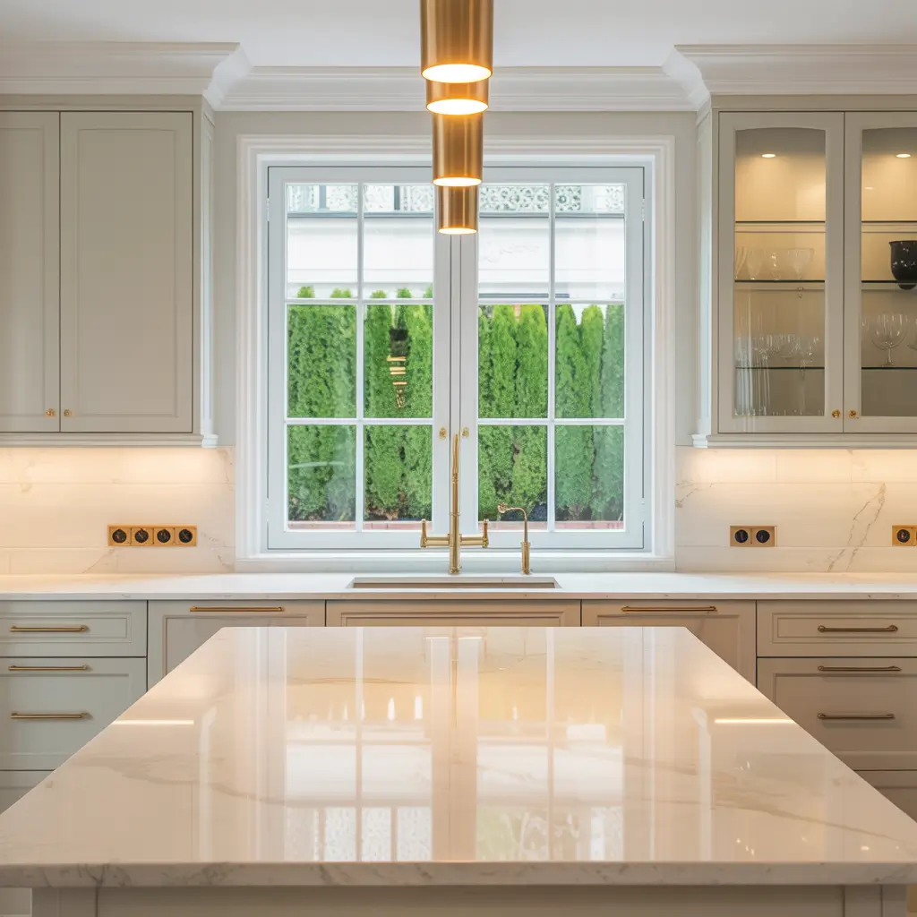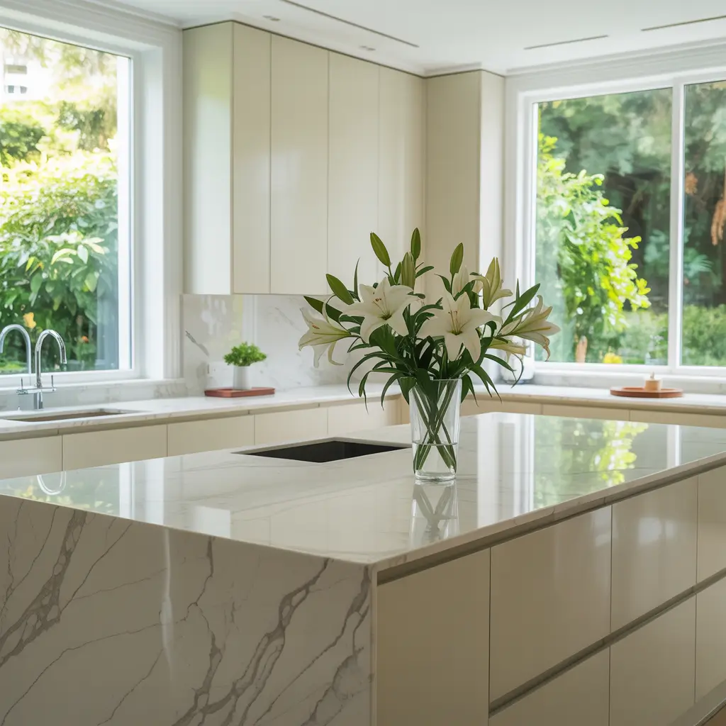 The beauty lies in the subtle contrast. Pure white cabinets can get lost against white marble, but off white? It creates just enough distinction to let both elements shine. Whether you choose Carrara, Calacatta, or Statuario marble, that slight warmth in off white cabinets complements the cool tones beautifully.