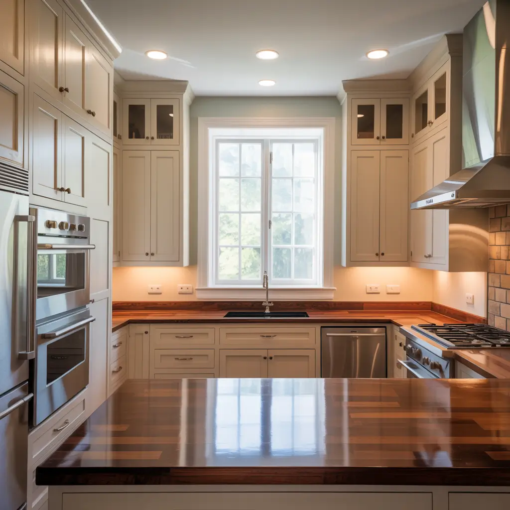 Here’s what sold me on this combo: it looks expensive but costs way less than marble. A quality butcher block countertop against off white cabinets gives you that high-end, custom look without the high-end price tag. Just remember to oil those counters regularly – they’re high maintenance, but so worth it.