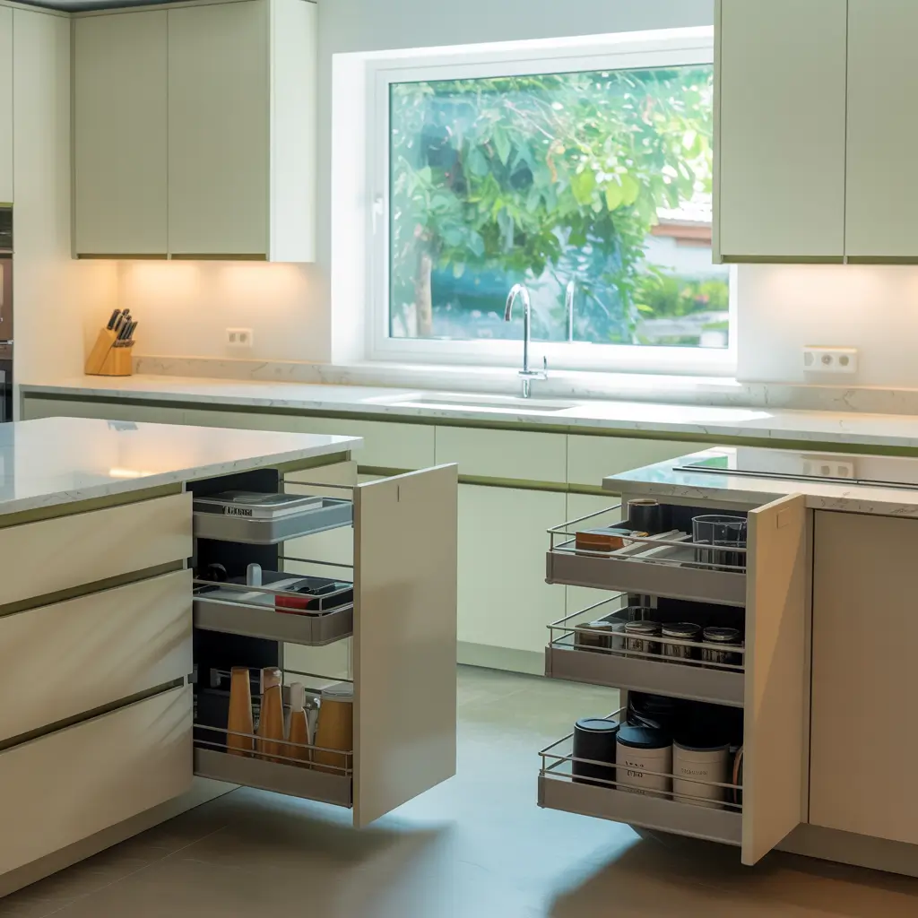 I installed pull-out trash bins behind off white cabinet doors, and it’s been a game-changer. The cabinets hide the mess while keeping everything accessible. Add some drawer organizers, spice pull-outs, and a pantry system, and suddenly your off white kitchen becomes as functional as it is beautiful.