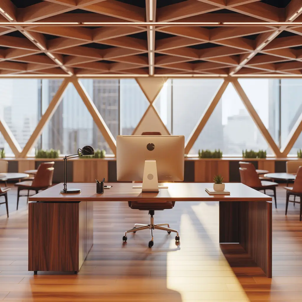 The beauty of wooden beams lies in their versatility. You can create simple parallel lines for a clean look, or get fancy with triangular and hexagonal patterns. I’ve seen offices use reclaimed wood for that rustic vibe, or sleek stained beams for something more contemporary.