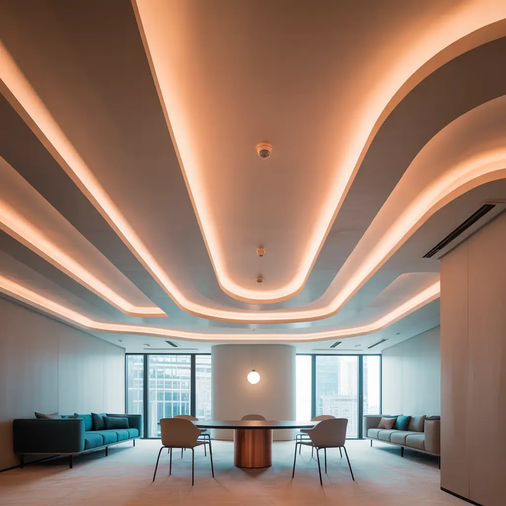 I’ve seen offices create different ceiling treatments for different zones. Reception areas get the wow factor with curves and lighting, while work areas prioritize acoustics and natural light. Meeting rooms might feature statement designs that reinforce company values.