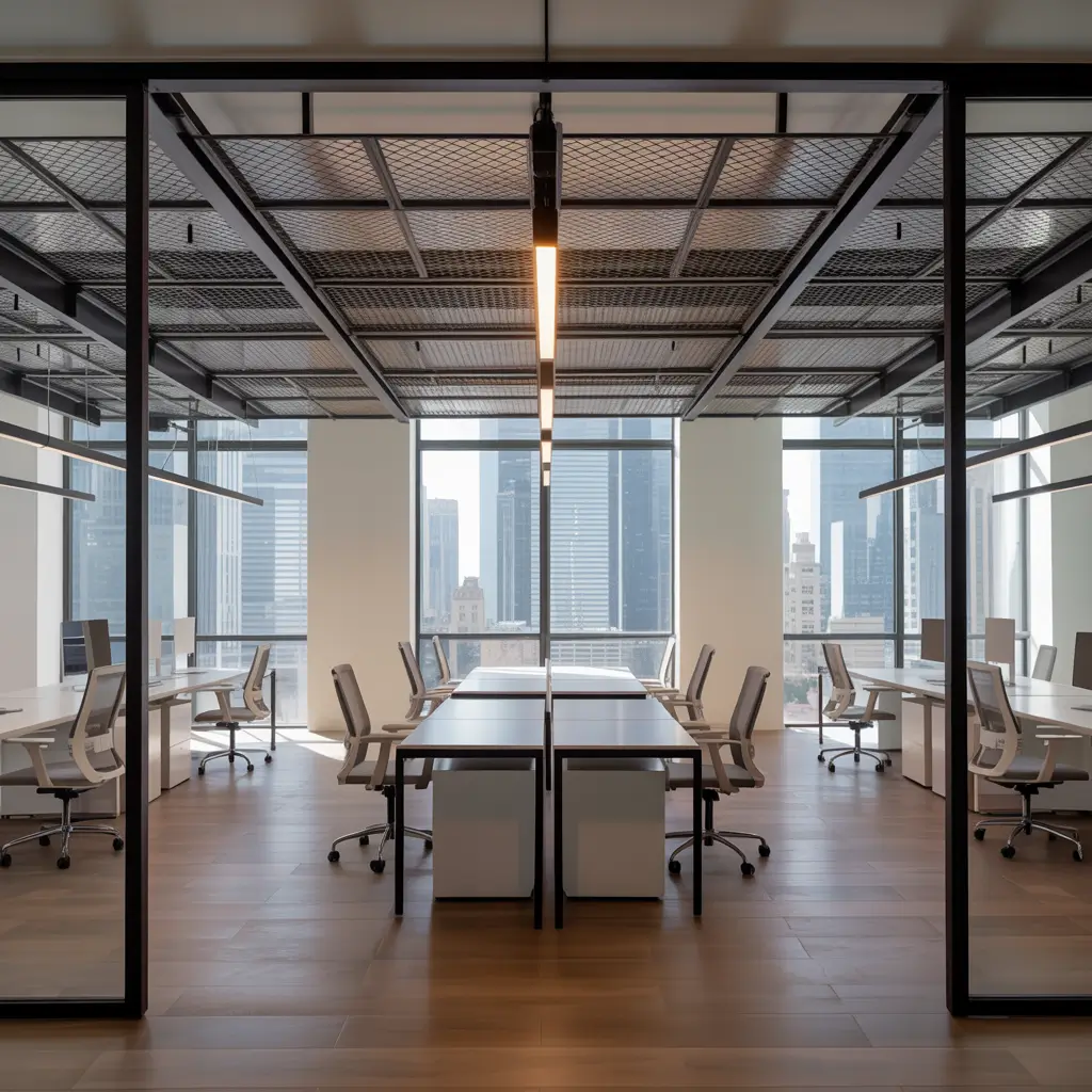 What I love about metal grids is their honesty – they don’t pretend to be anything other than what they are. Plus, they’re incredibly practical for offices that need frequent access to utilities above the ceiling.