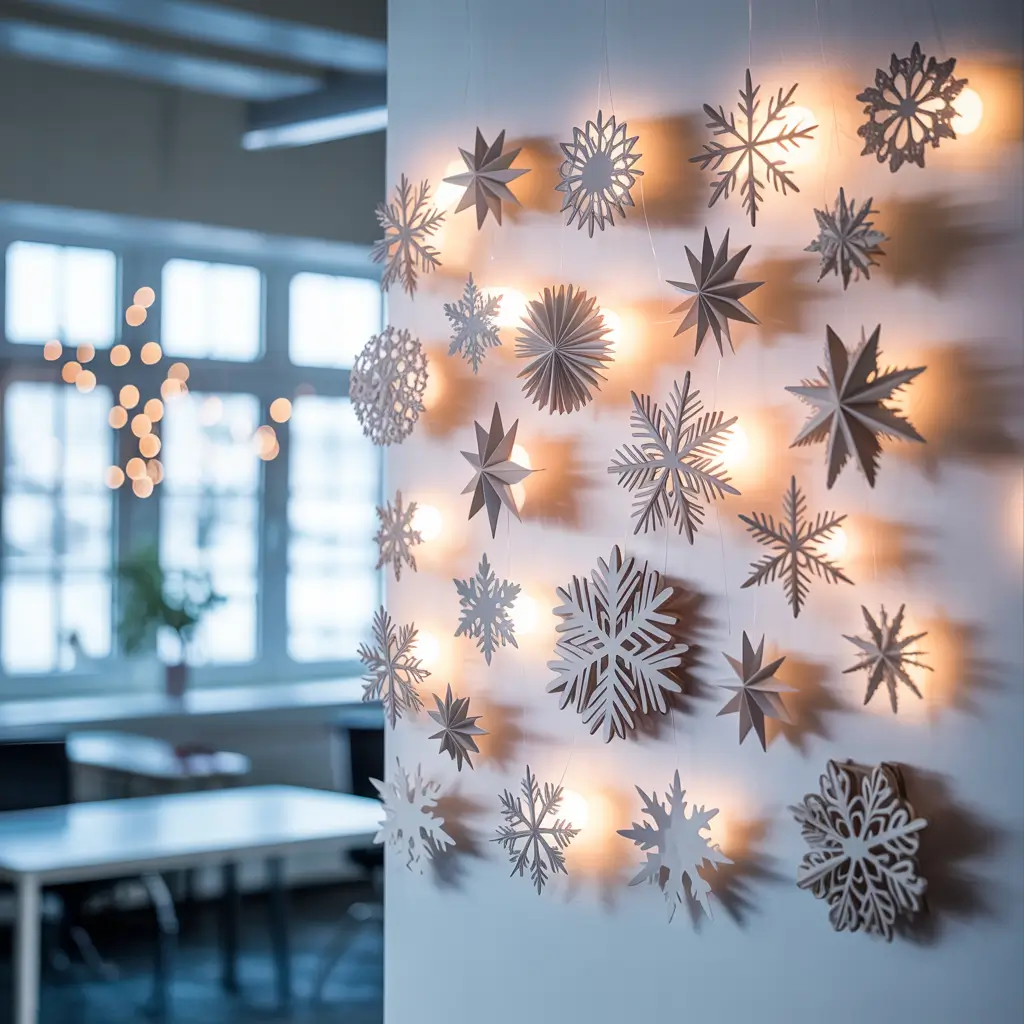 The key to adult-appropriate snowflakes? Quality paper and intentional placement. Skip the printer paper and opt for metallic cardstock or vellum. Create varying sizes and arrange them in clusters rather than random scattering. Think art installation, not craft explosion.