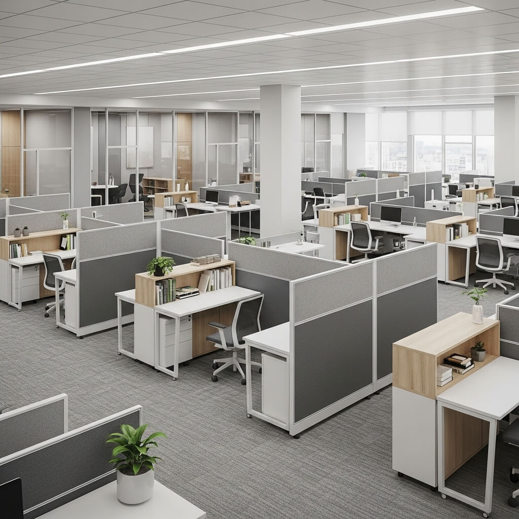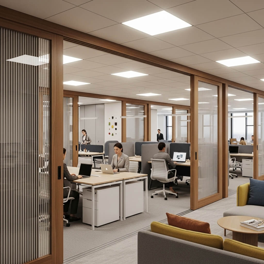 In small offices, every partition decision matters. You need to maintain traffic flow, preserve natural light, and create functional zones all while avoiding that “maze-like” feeling that poorly planned partitions can create.