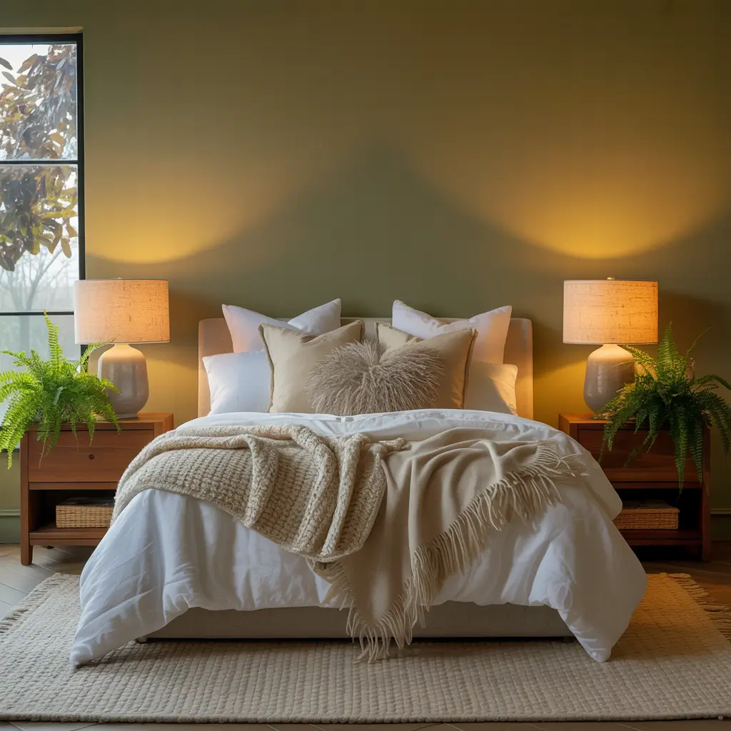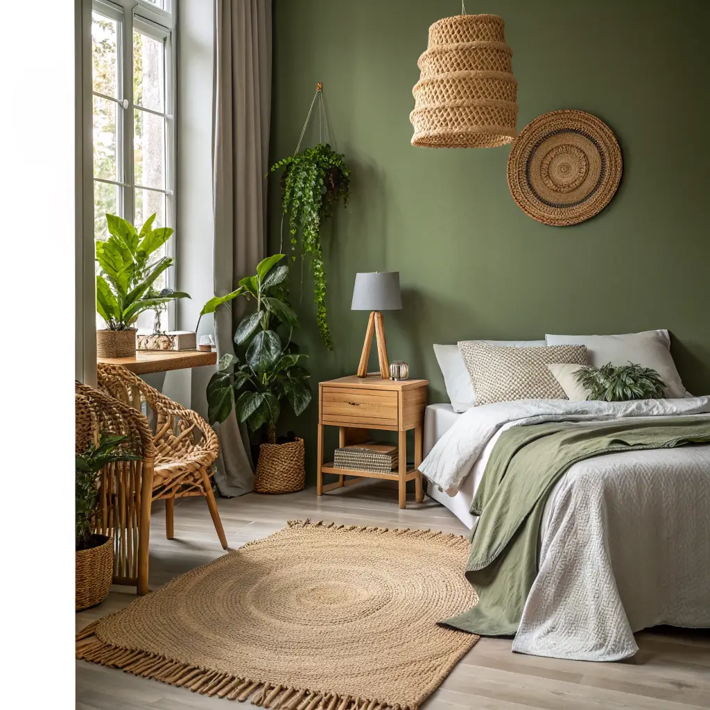 Olive Green Bedroom with Natural Textures