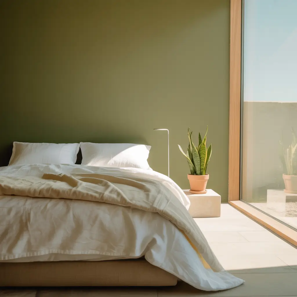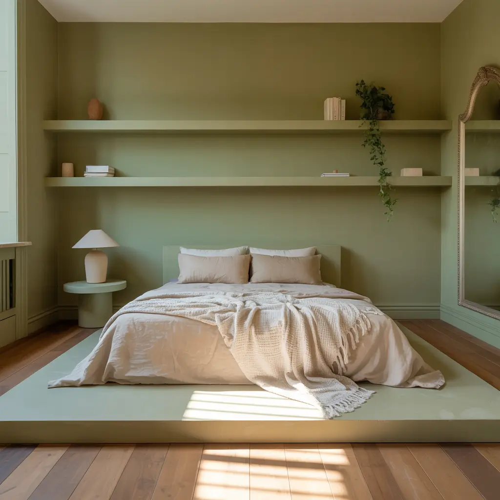 Modern Olive Green Minimalist Bedroom