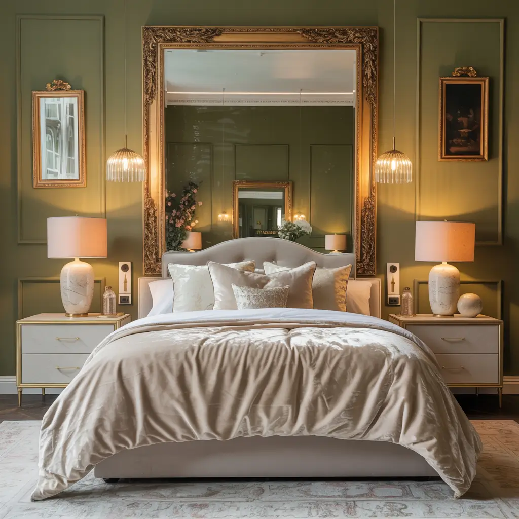 Olive Green and Gold Luxe Bedroom