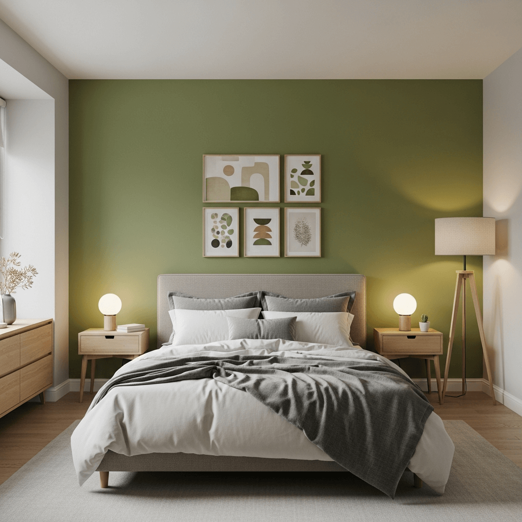 I started with an olive accent wall behind my bed before going full olive everywhere. That single wall transformed the entire room’s vibe from “meh” to “magazine-worthy.” The key is choosing the right wall – behind the bed is foolproof, but a wall with interesting architecture works too.
