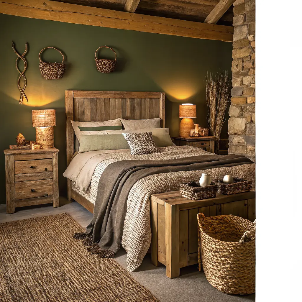 Earthy Olive Green Rustic Bedroom