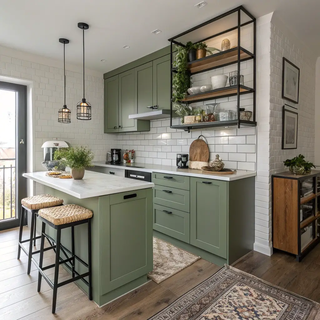 4. Small Kitchen Ideas with Olive Green Cabinets