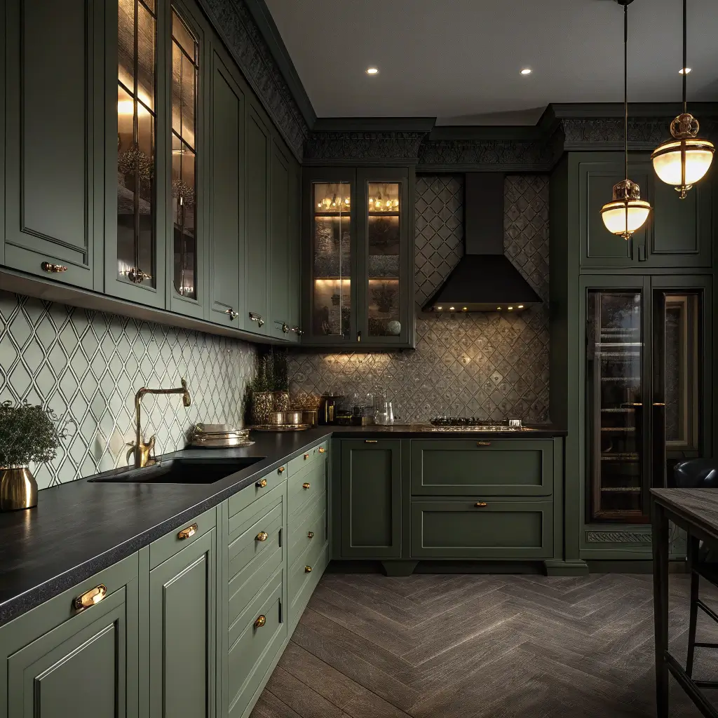 7. Dark & Moody Olive Green Kitchen Designs