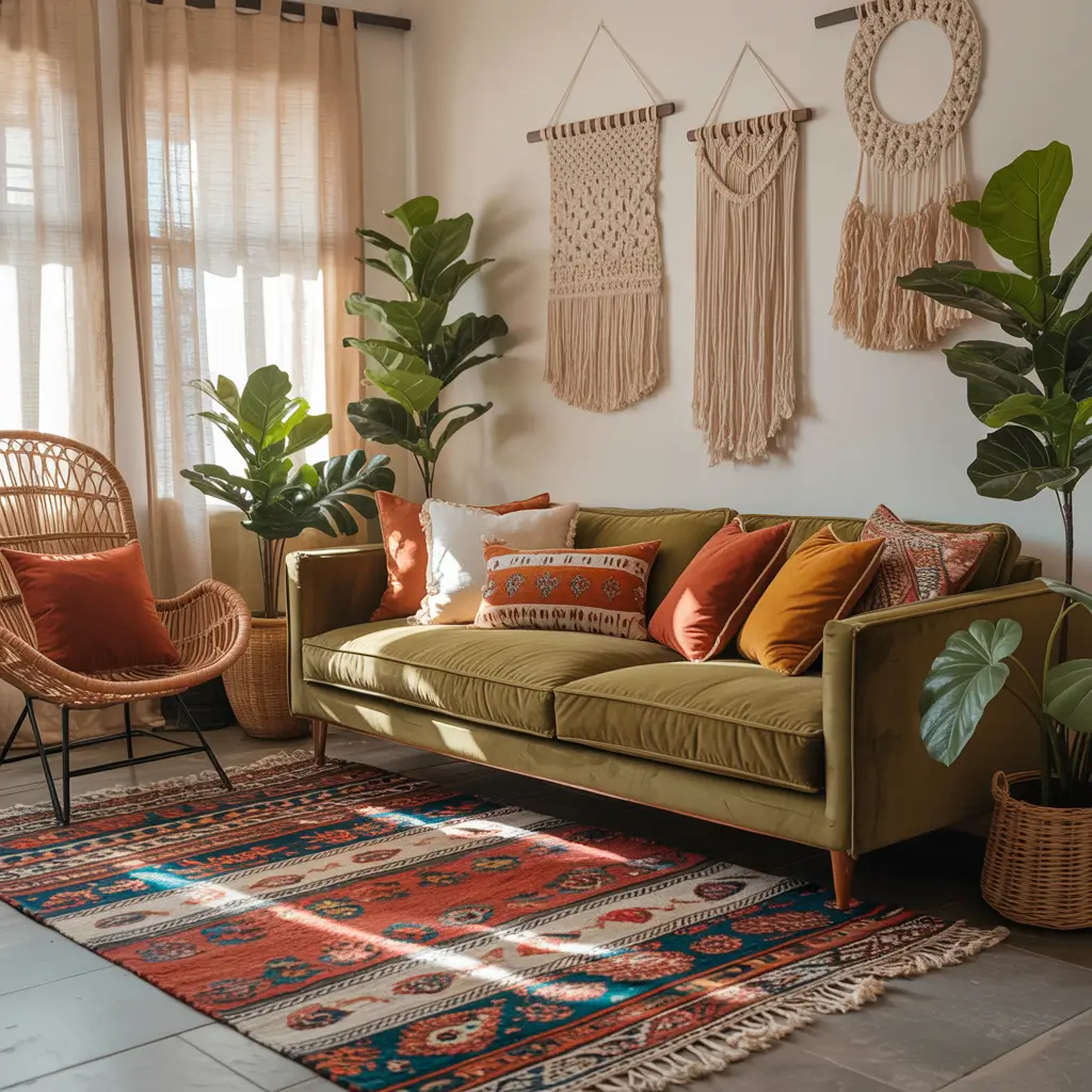 I went full boho with olive in my last apartment, and the transformation was insane. What started as a boring white box became this layered, textured paradise that looked like I’d been collecting pieces from around the world for years. (Reality: mostly Target and Facebook Marketplace, but nobody needs to know that.)