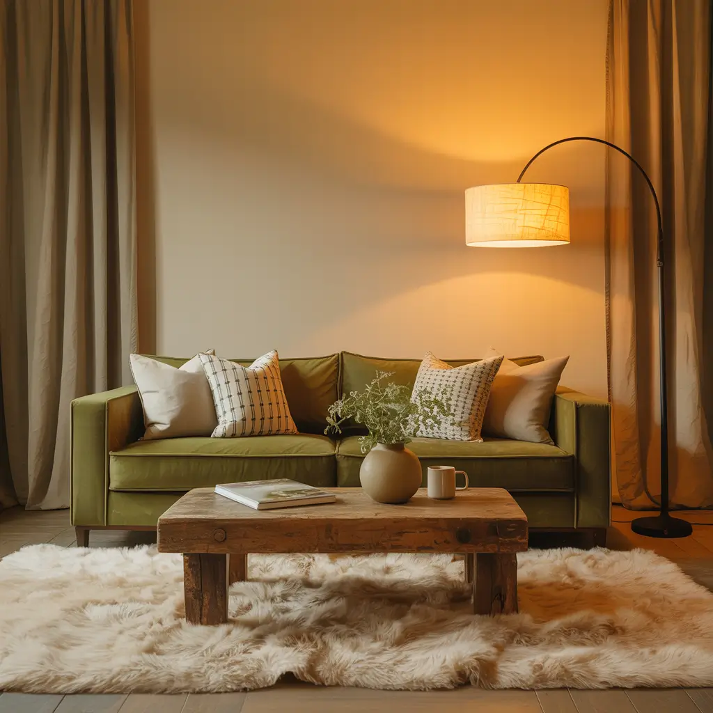 Start with one statement texture piece, like an olive green velvet ottoman or a chunky knit throw. Then build around it with complementary textures in similar tones. The light plays differently off each surface, creating visual interest that makes people want to touch everything.