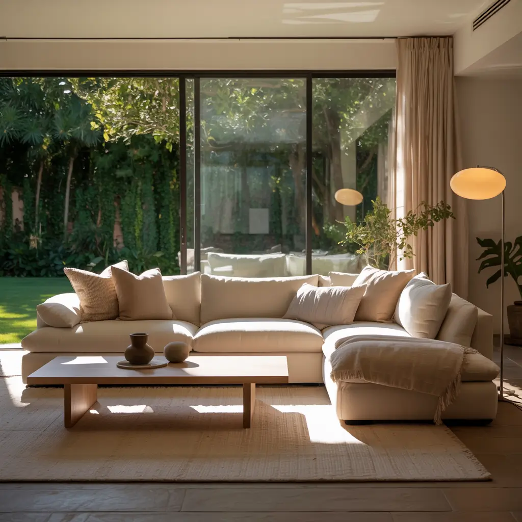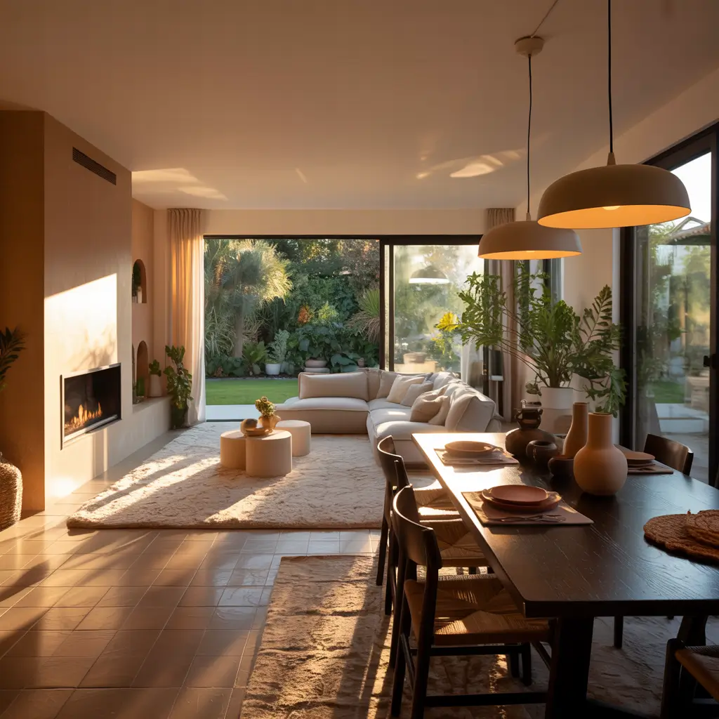 • Natural textures (wood, stone, linen, jute)
