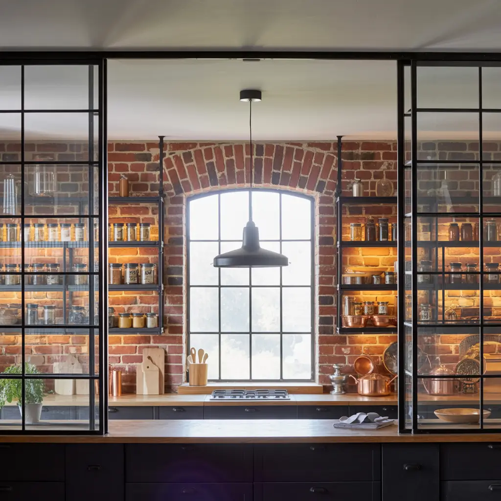 Industrial shelving brings that cool warehouse vibe home. Metal frames with wood shelves create contrast that works in modern and traditional kitchens alike. Plus, they’re practically indestructible.