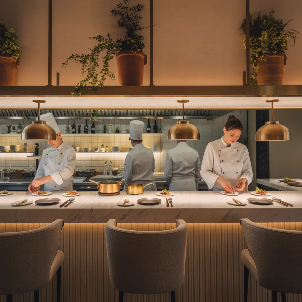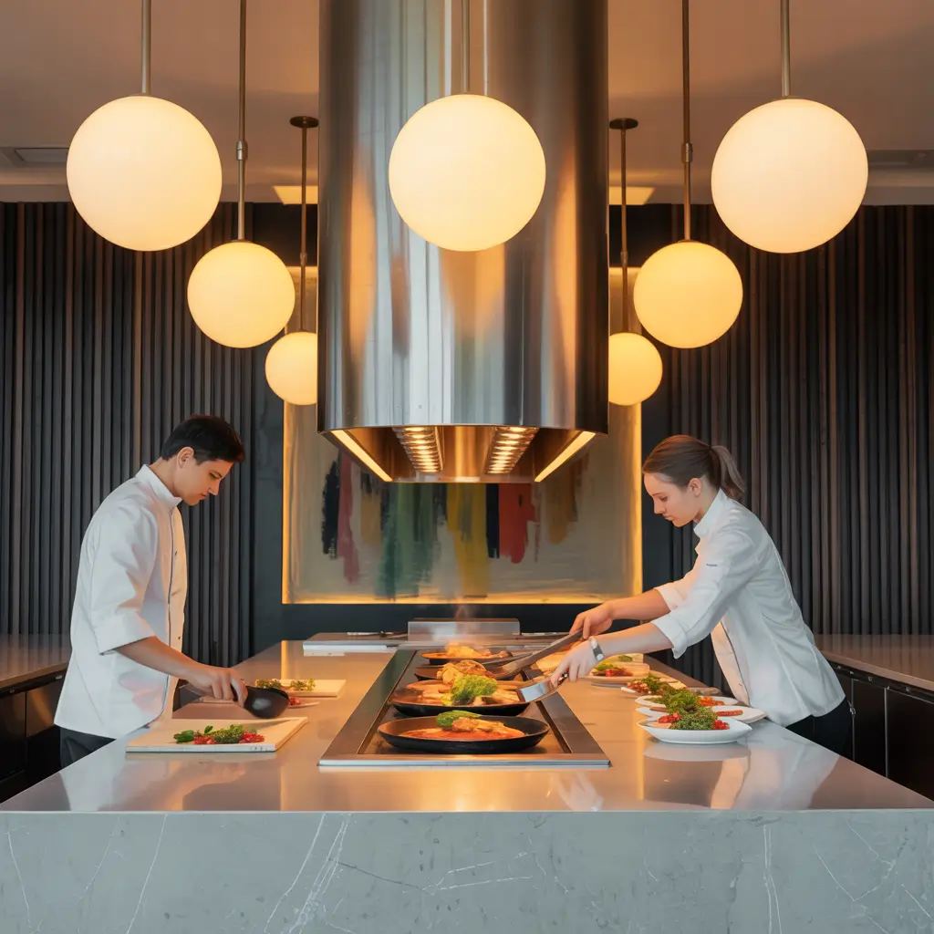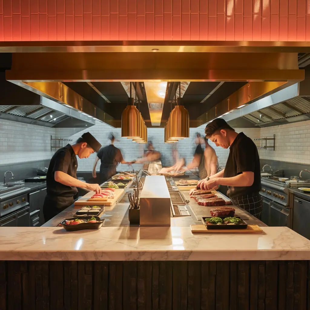 This concept works brilliantly for high-end sushi bars and modern European restaurants. I visited one in Tokyo where the entire kitchen looked like an Apple store – clean lines, hidden everything, just the chef and their tools. Mind-blowing efficiency.