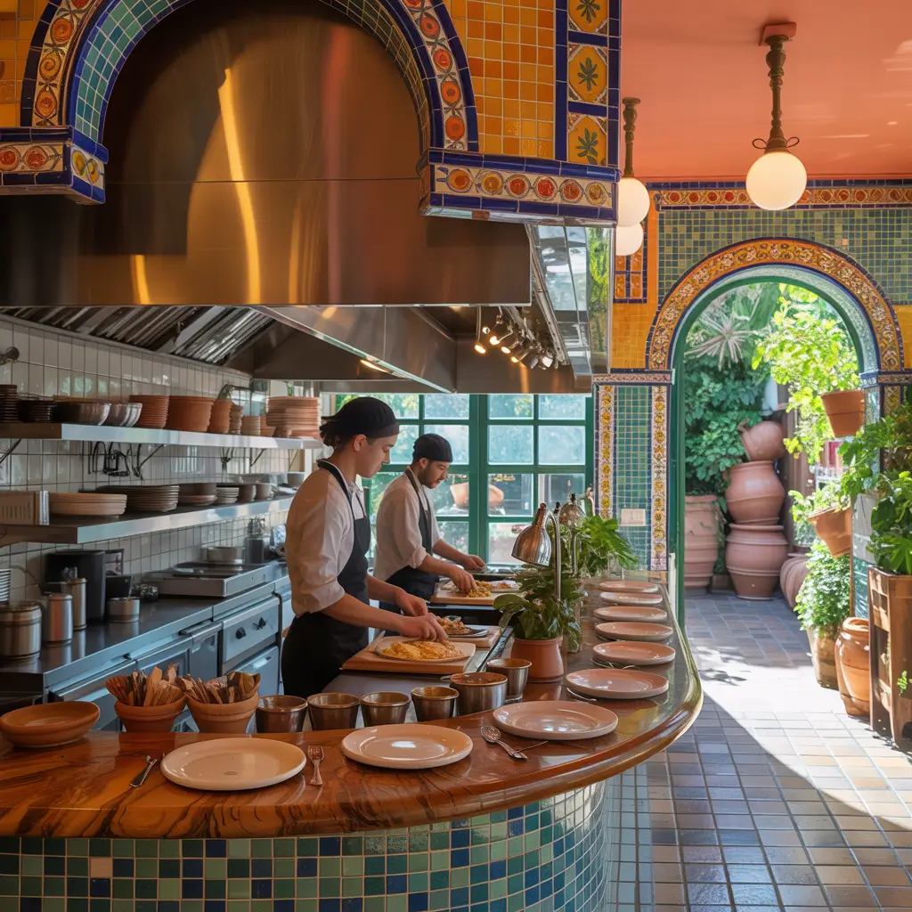 Mediterranean open kitchens transport diners straight to the Italian coast. Colorful tiles, warm wood, and copper accents create an atmosphere that makes every meal feel like a vacation. The key is balancing authenticity with practicality.