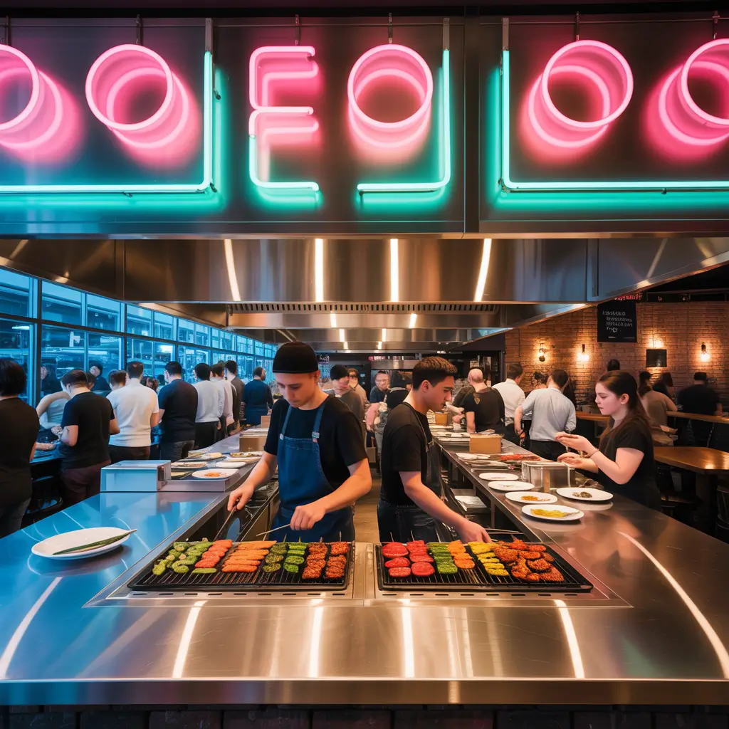 This setup requires serious planning and a bigger footprint. But for fusion concepts, showing both cooking styles simultaneously reinforces your diverse menu authentically.