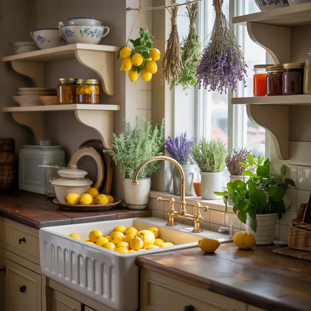 Include functional vintage pieces that tell a story. My shelves hold my great-aunt’s rolling pin, antique mason jars, and a butter churn that’s purely decorative (because I’m not actually churning butter, let’s be real).