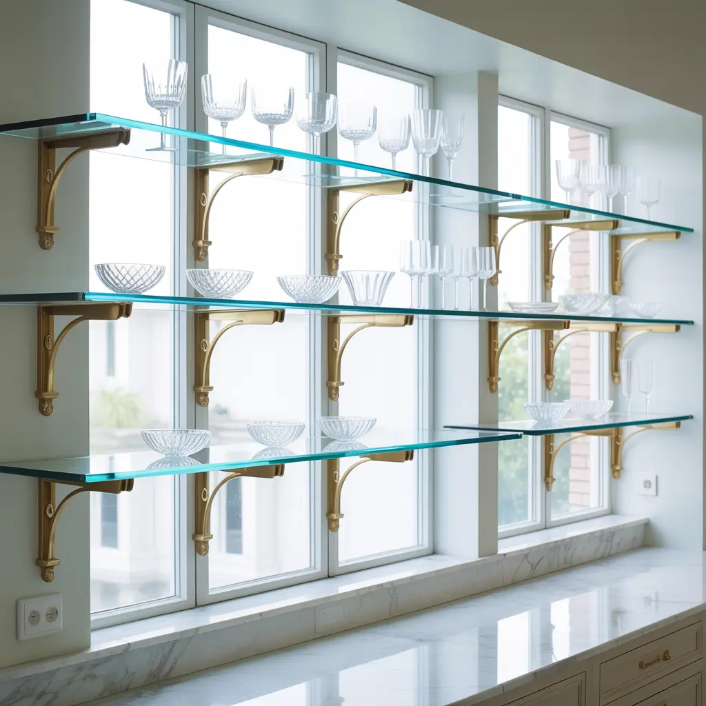 Choose tempered glass for safety and durability. Regular glass in kitchens is asking for disaster when you’re juggling hot pans and sharp knives. I learned this from a friend whose non-tempered shelf literally exploded one day. Nobody was hurt, but RIP to those wine glasses.
